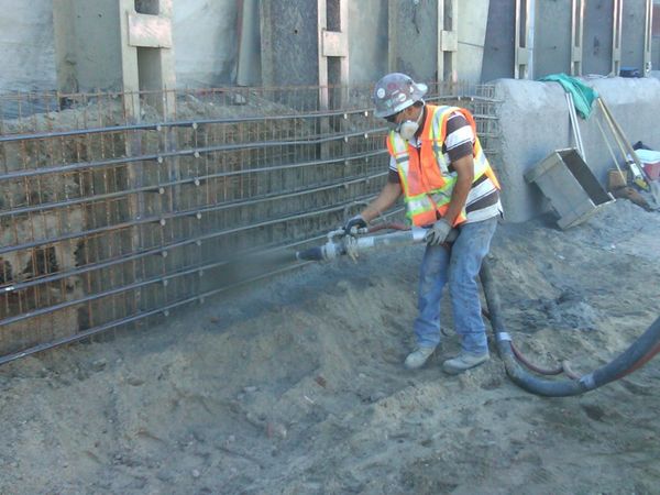It can be sprayed onto any type or shape of surface, including vertical or overhead areas. We are using Shotcrete machines, which control complete process and made it very fast and easy. 'Manual and mechanical methods are used for the wet spraying process, but wet sprayed concrete is traditionally applied by machine. The high spray outputs and large cross-sections require the work to be mechanized.